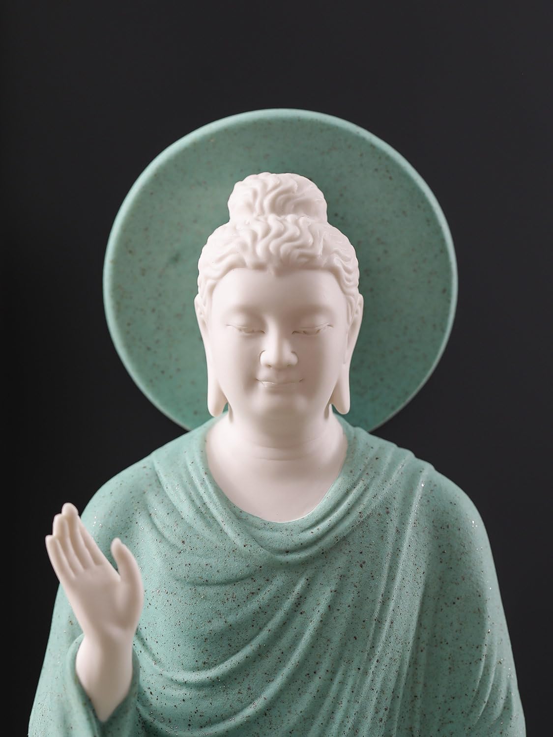 • Mudra and Symbolism: This Buddha statue depicts the , with the right hand raised in a gesture of fearlessness, offering protection and reassurance, while the left hand rests on the lap in , symbolizing compassion and charity. Together, these mudras embody the Buddha’s ability to offer blessings and peace, reminding followers of his role as a protector and source of guidance, instilling confidence and serenity on the path of righteousness.