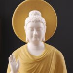 - Mudra and Symbolism: This Buddha statue depicts the , with the right hand raised in a gesture of fearlessness, offering protection and reassurance, while the left hand rests on the lap in , symbolizing compassion and charity. Together, these mudras embody the Buddha’s ability to offer blessings and peace, reminding followers of his role as a protector and source of guidance, instilling confidence and serenity on the path of righteousness.