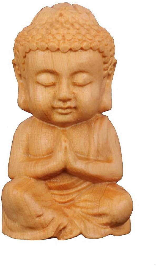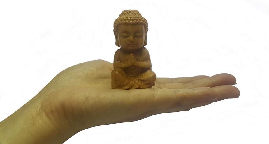 Hand Carved Natural Wood Buddha Statue Religious Buddhist Sitting Buddha Palm Size Sculpture Figurine